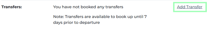 - From here, you will see all details relating to your booking in which you can update and see all outstanding items. Find the heading called ‘Transfers’